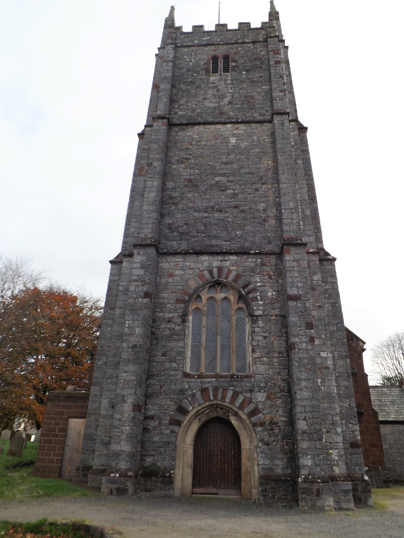 The tower of St. Michael's dates from 1480 and is built of limestone interspersed with red sandstone and developed in three tapering stages. As is typical of Devon towers it is more a construction of strength than one of beauty. Nevertheless it is an impressive example of masoncraft of the Middle Ages and a fine example of the perpendicular gothic architecture in found in Devon. It measures 82ft. in height and the walls are 6ft. thick. The four pinnacles differ in stone from the rest of the tower and may have come from some earlier church.