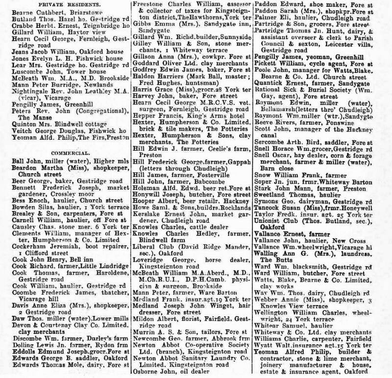 (Extract from Kelly's Directory showing principal residents and businesses in 1914)